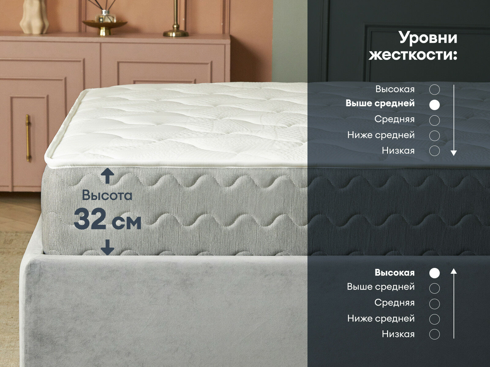 Идеальный выбор для тех, кто ищет матрас с оптимальным уровнем поддержки: многослойная система, зональные пружины гарантируют здоровый сон на долгие годы.