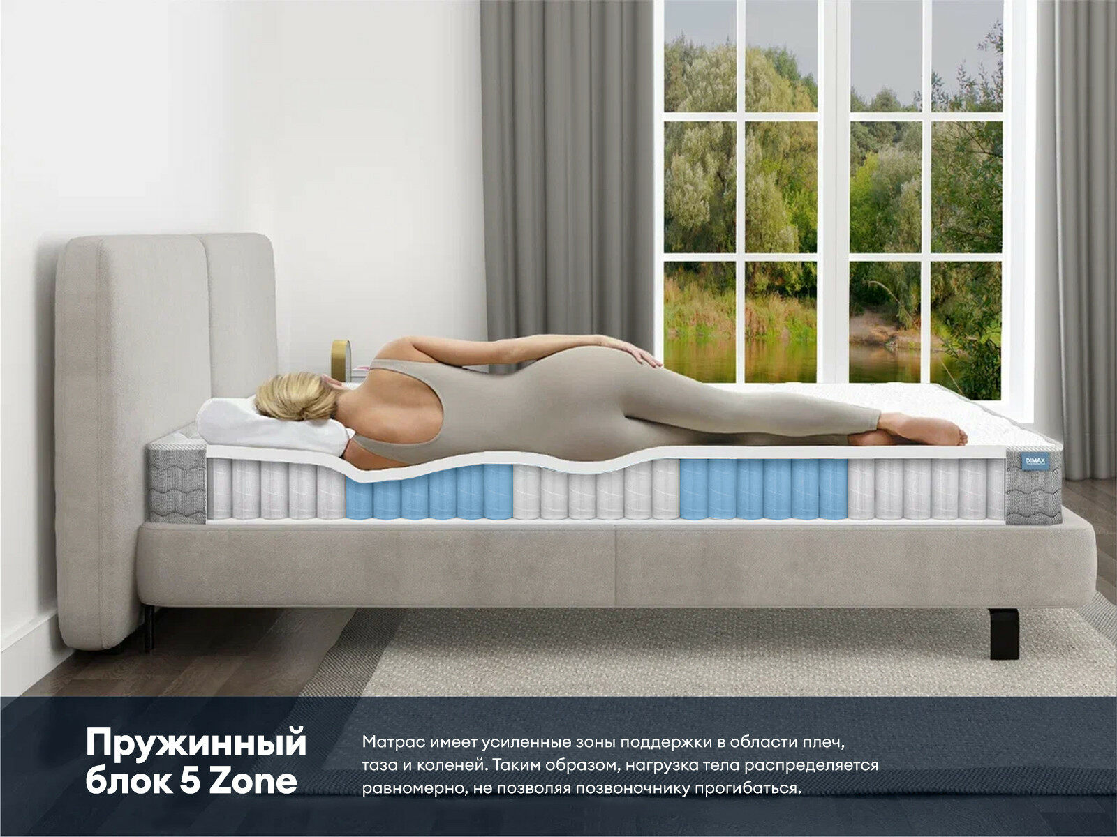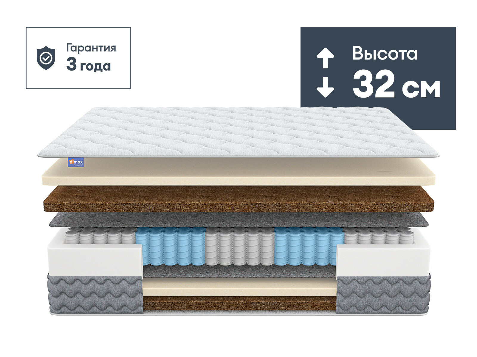 Димакс Биг Ультимэйт — пружинный матрас с усиленной зональной поддержкой и многослойным составом для вашего комфортного отдыха. Его уникальная многослойная система, включая блок 5 Zone, обеспечивает анатомически точную адаптацию под тело и ортопедическую поддержку для всех областей позвоночника.