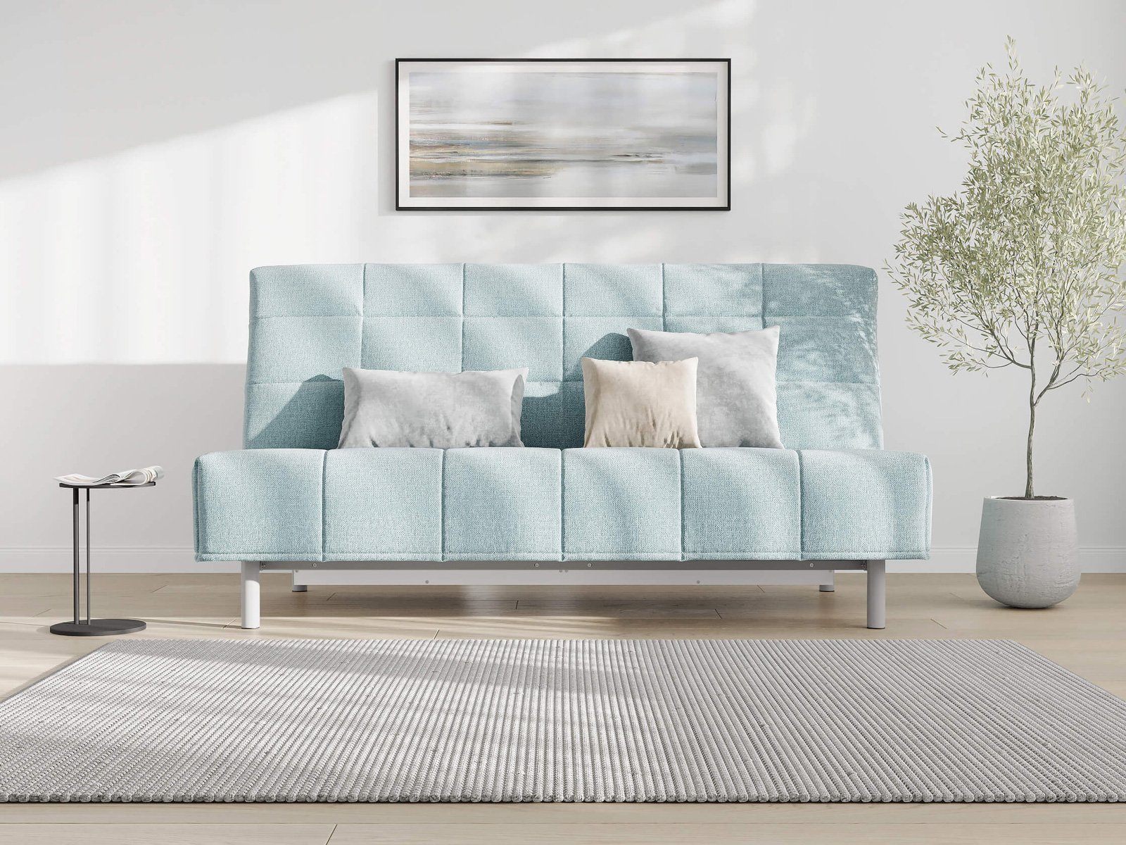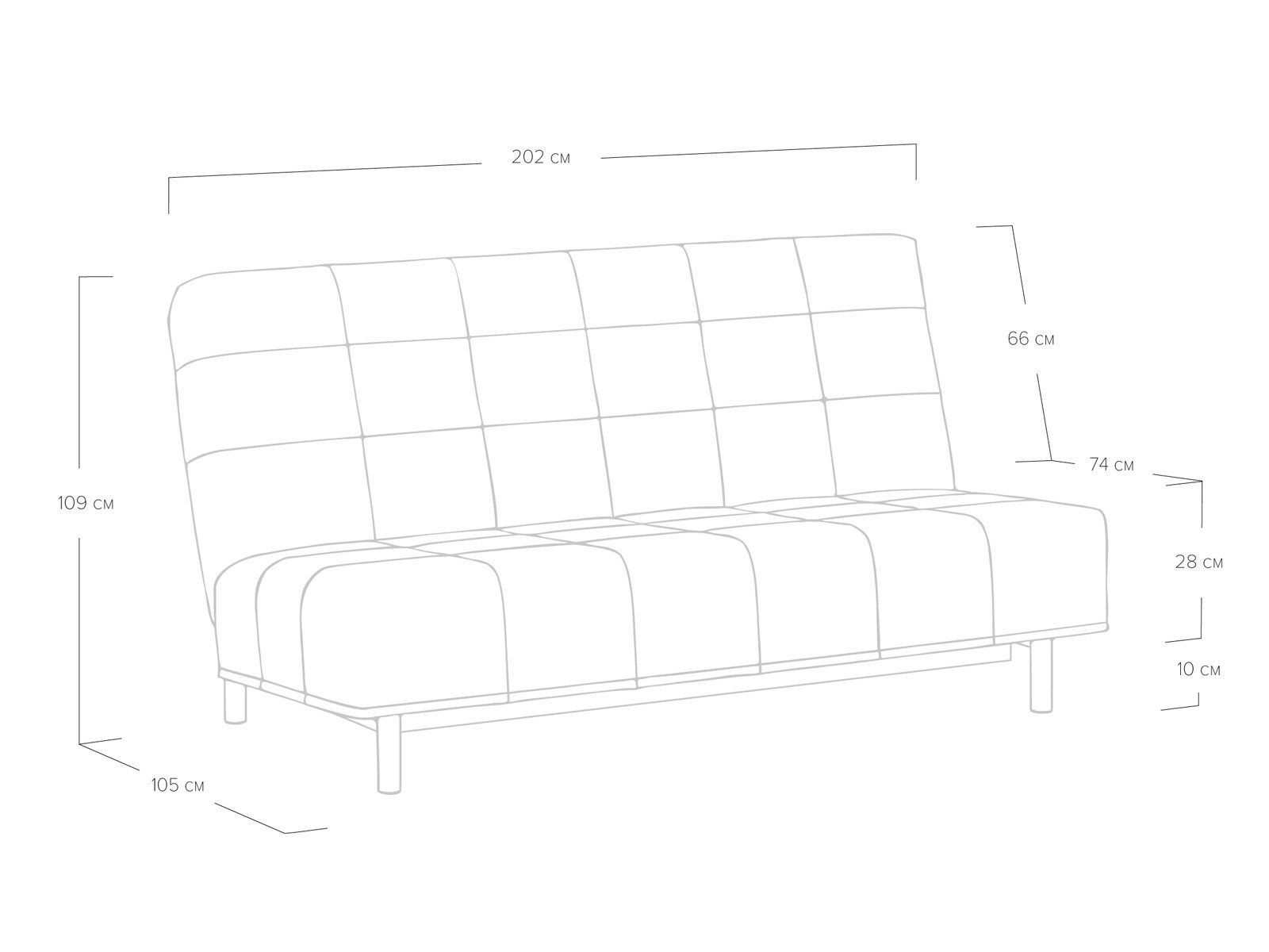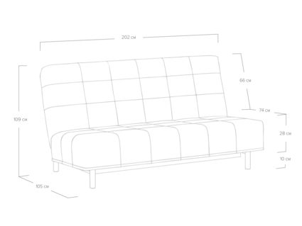 Диван для сна в современном стиле с механизмом трансформации «клик-кляк» и коробом для хранения. Основание дивана металлическое, с ламелями. Матрас анатомический с независимым пружинным блоком. Благодаря съемному чехлу с объемной стежкой в форме квадратов, диван органично впишется в современные интерьеры в стиле минимализм. Благодаря отсутствию подлокотников у дивана минимальные габариты как в сложенном, так и разложенном виде.