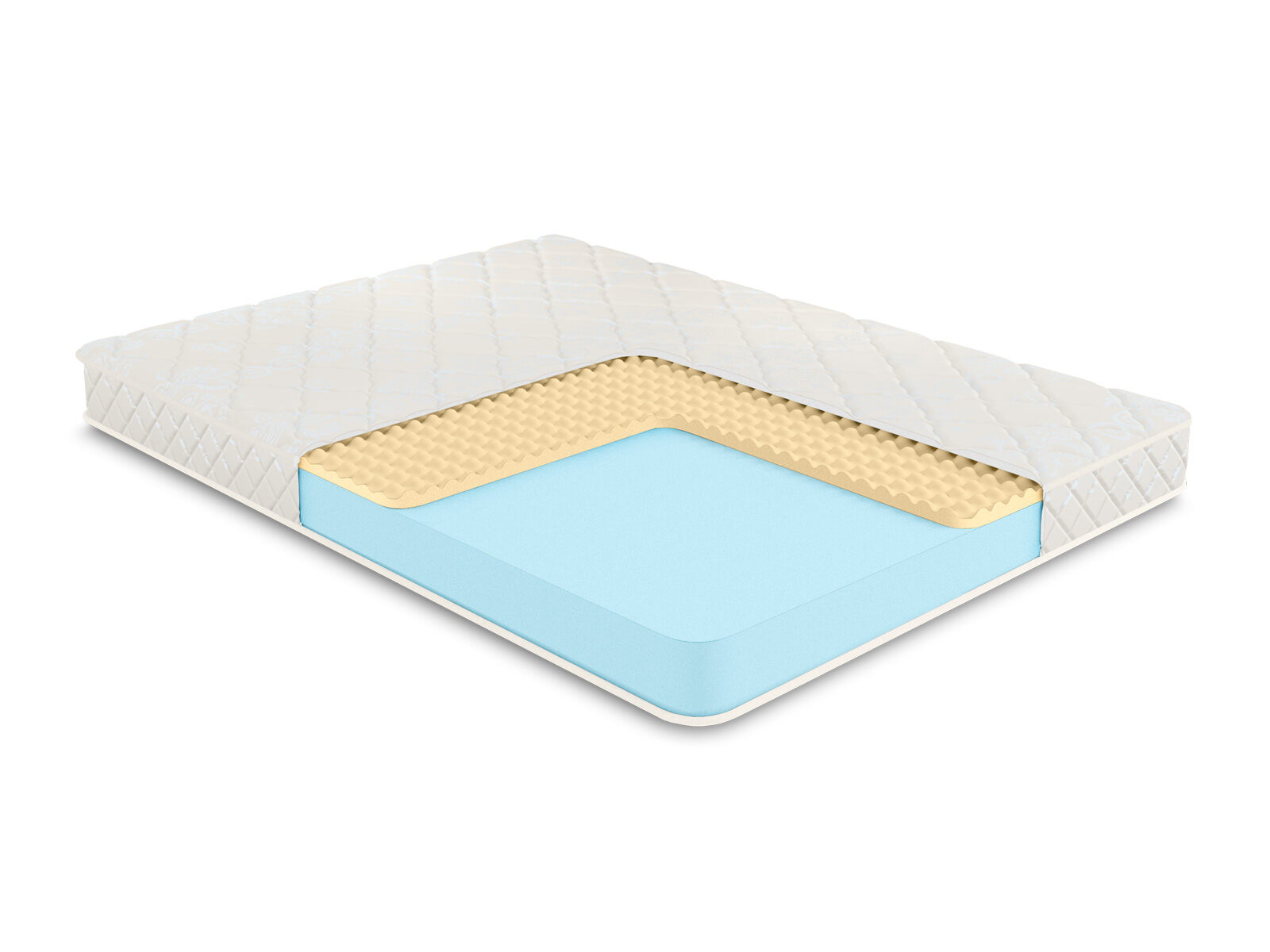 Чехол матраса из хлопкового жаккарда, который обладает высокой износостойкостью, простеган на Холлконе и имеет очень длительный срок службы. Ткань чехла может немного отличаться по рисунку, а также по оттенку цвета, это не влияет на ее свойства и качество.