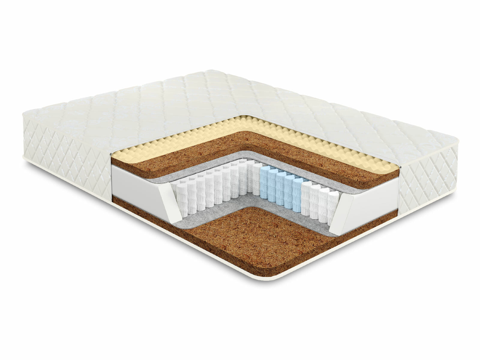 Кокосовое волокно с натуральным латексом придает жесткость, экологически чистый материал, который прекрасно вентилируется.
