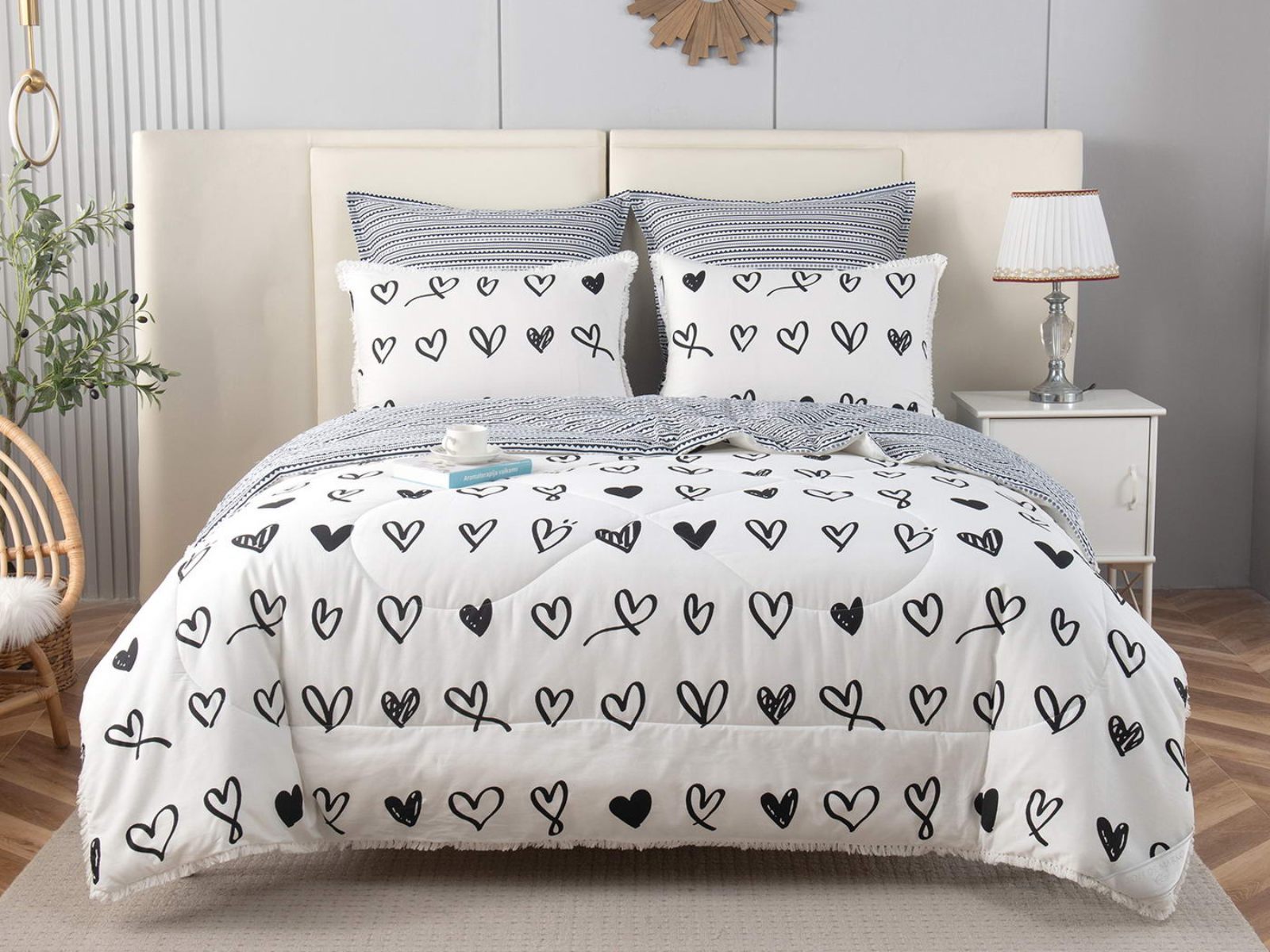 В комплекты комфортеров с одеялом Бернадетт входят наволочки, простыня и легкое всесезонное одеяло. Оцените это современное и очень удобное решение, которое идеально подходит тем, кто не любит возиться с пододеяльниками.