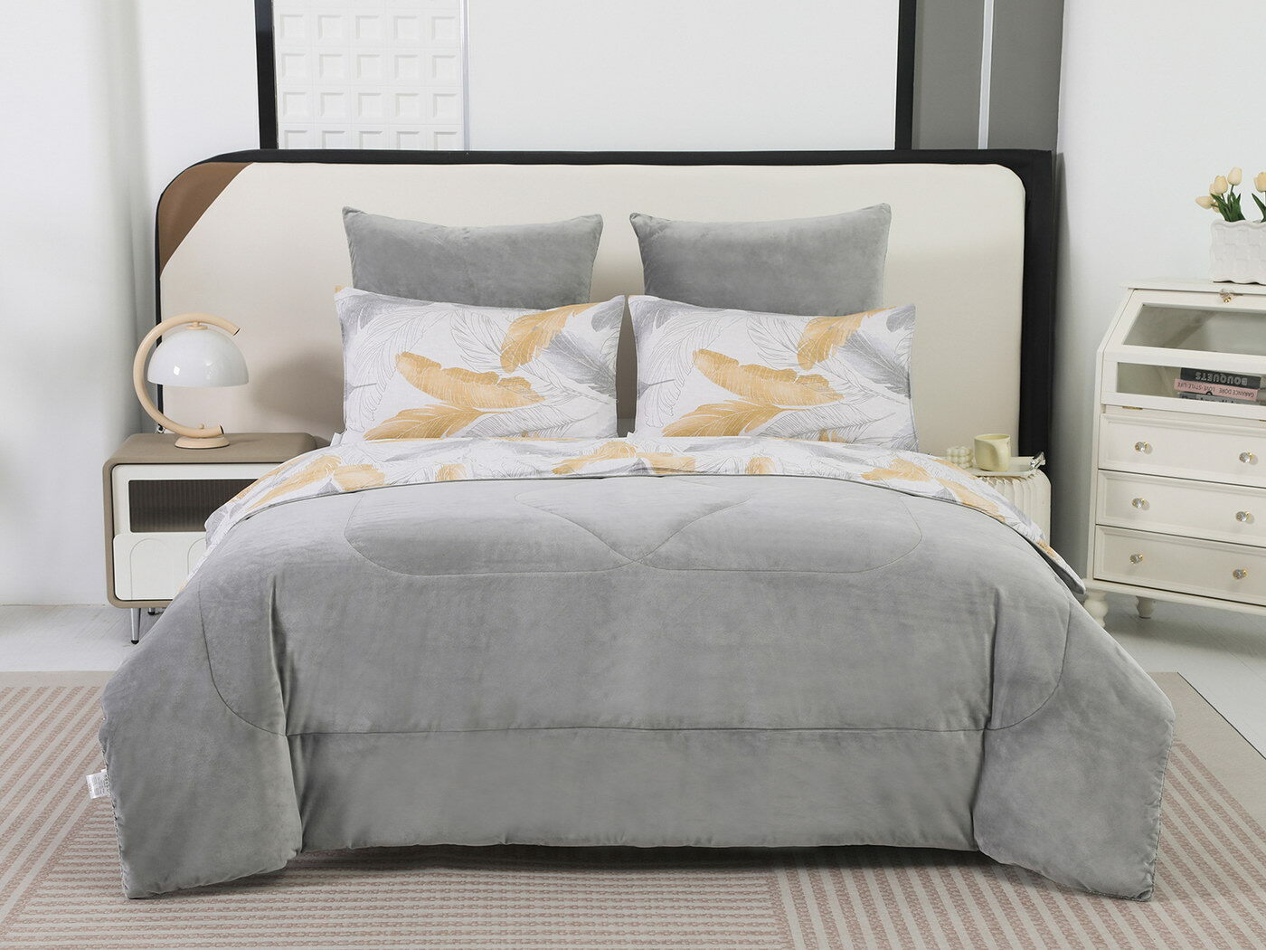 Новая коллекция комплектов «Роберто» с одеялом из однотонного велюра и принтованного сатина.