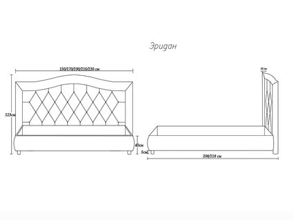 Кровать Эридан отличается высоким изголовьем плавной изогнутой формы. Спинка модели оформлена классической каретной стяжкой и дополнена пуговицами, обтянутыми в тон. Для любителей оригинальных решений производитель предусмотрел возможность замены пуговиц на сияющие стразы. Царги мебели получили плавные скользящие линии, которые делают силуэт обтекаемым. Продуманные формы наделяют кровать высокой функциональностью и позволяют безупречно вписать в любой интерьер.