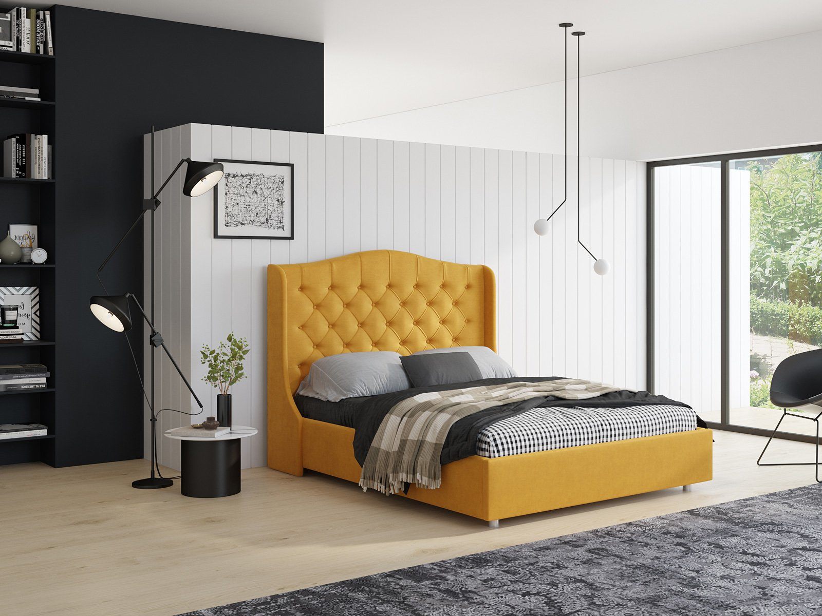 Кровать Сантана отличается классической эстетикой. Высокое изящно изогнутое изголовье словно заботливо оберегает вас от внешних воздействий и обеспечивает максимальный комфорт во время сна. Каретная стяжка и отделка декоративными пуговицами придают изделию особый шарм, изысканность и визуальную глубину.