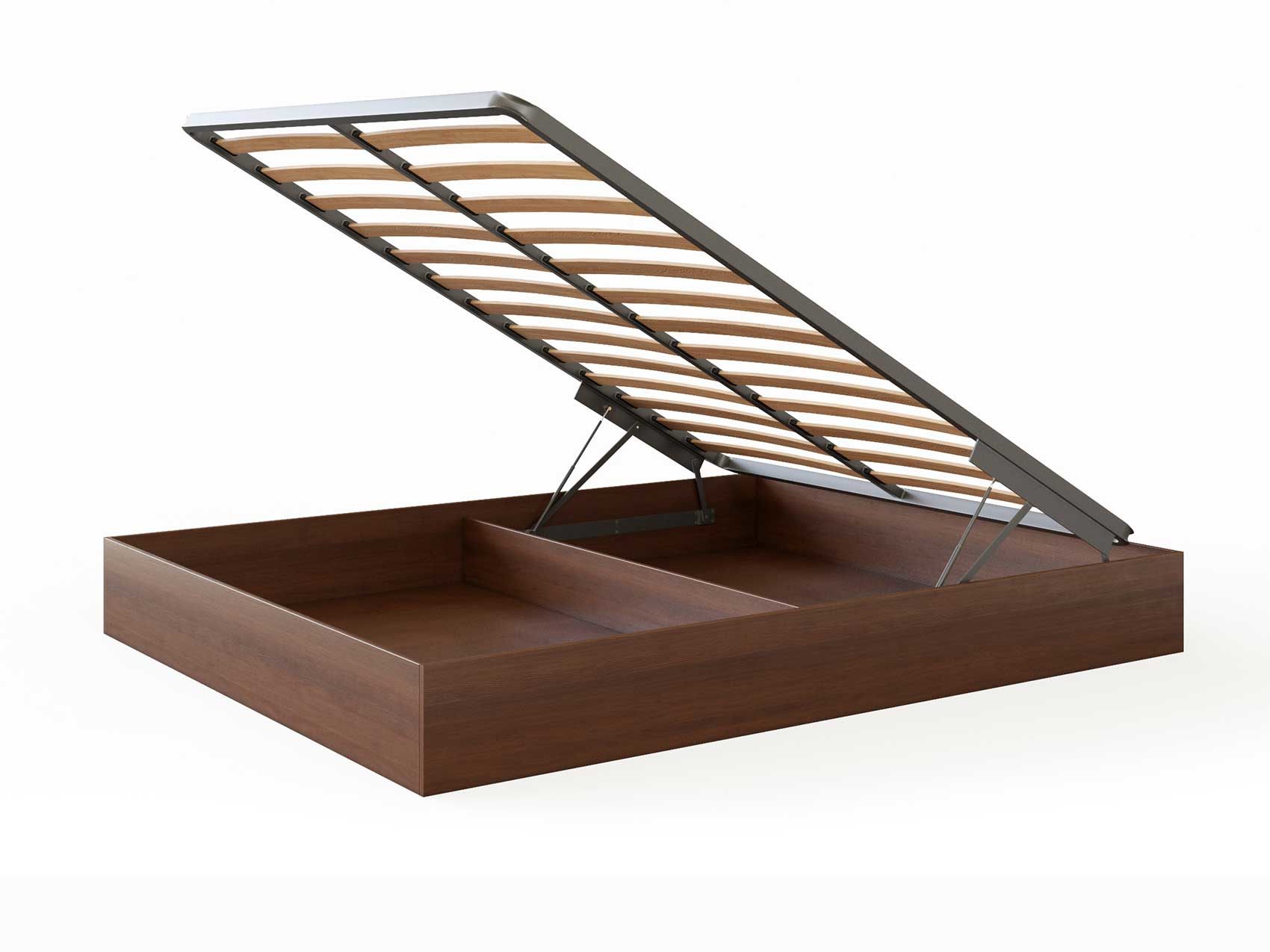 Кровать Куб представляет собой металлическое основание с ламелями из березового шпона и ящик для белья, которые соединены специальным механизмом подъема, который рассчитан под вес матраса. Ящик изготавливается из мягколиственных пород древесины (МЛПД). Стандартно предусмотрено основание Dream. Требуется сборка. Внешние габаритные размеры: - 4 см по длине и ширине.