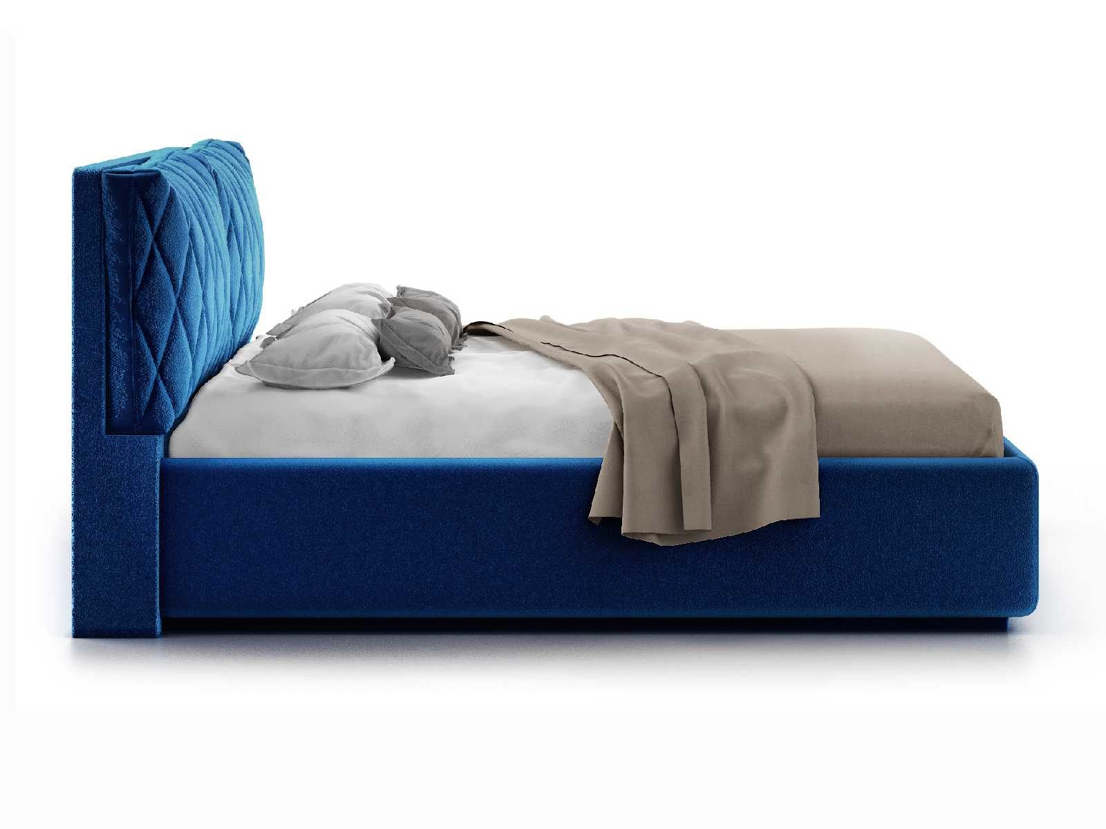Кровать укомплектована IQ с подъемным механизмом и ящиком для белья без дна (дополнительная платная опция - дно к ящику IQ из HDF (ХДФ). Каркас кровати на цоколе, декоративный чехол на цоколе съёмный. Глубина ящика для белья - 30 см, без ограничения нагрузки на ящик.