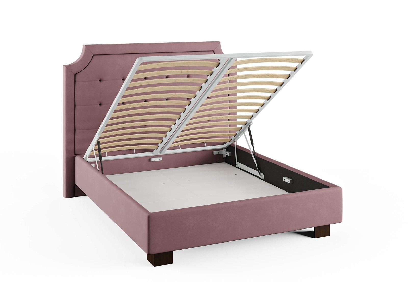 Кровать комплектуется металлическим основанием и подъемным механизмом со вместительным бельевым ящиком. Дно бельевого ящика легко сдвигается для обеспечения уборки под кроватью.