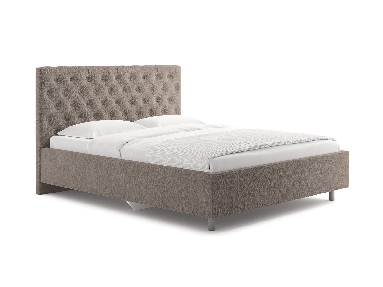 Элегантная интерьерная кровать с изголовьем, украшенным декоративными пуговицами и глубокой пиковкой. Модель изготовлена из ДСП.\