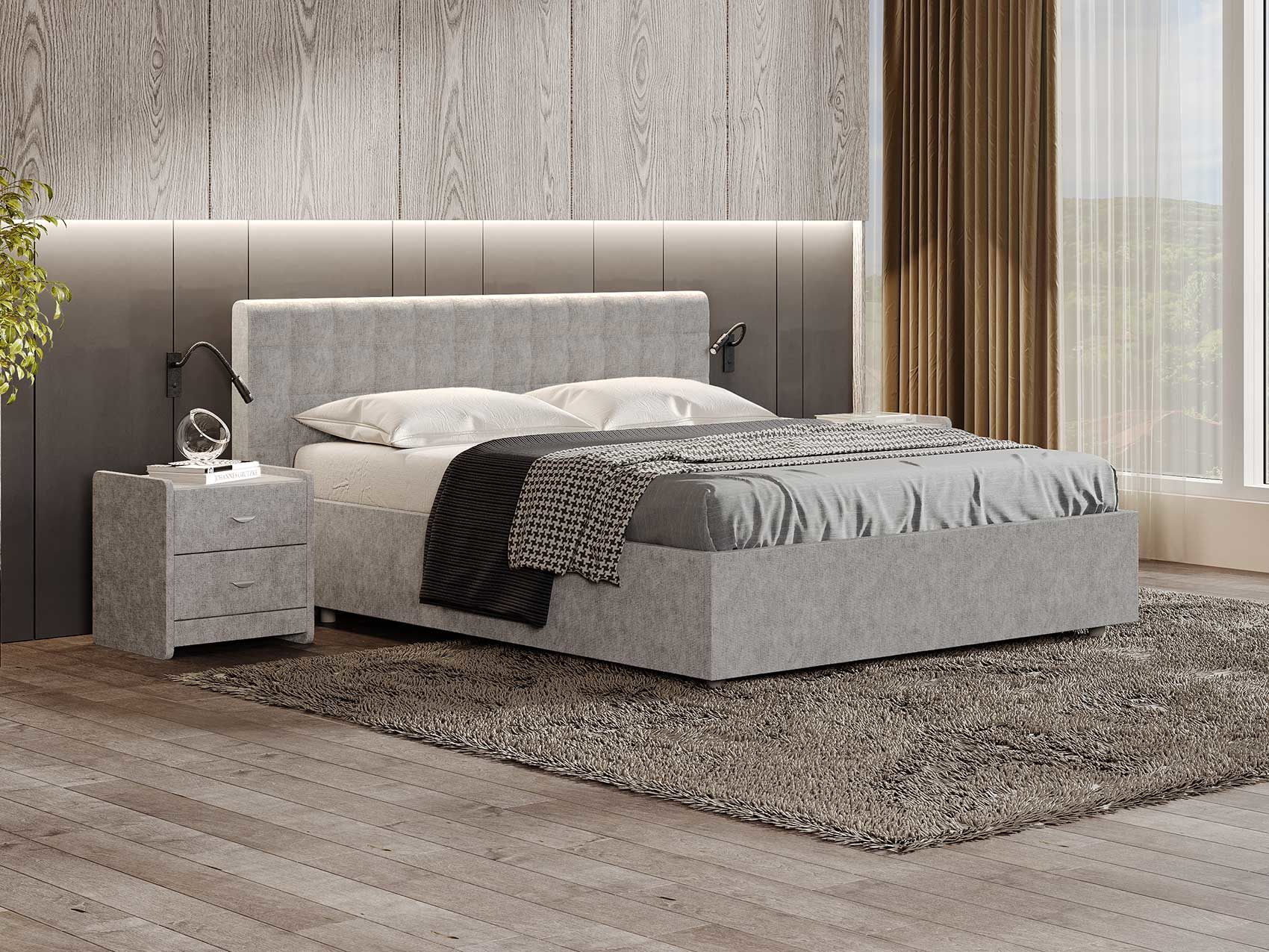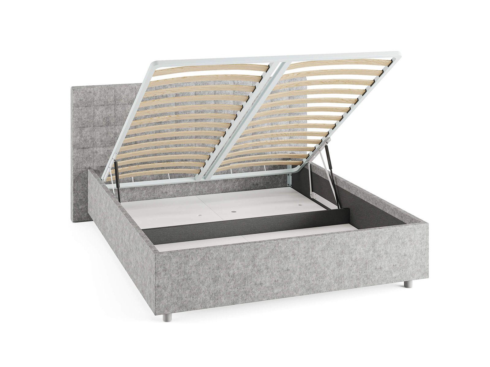 Кровать комплектуется металлическим основанием и подъемным механизмом со вместительным бельевым ящиком. Дно бельевого ящика легко сдвигается для обеспечения уборки под кроватью.