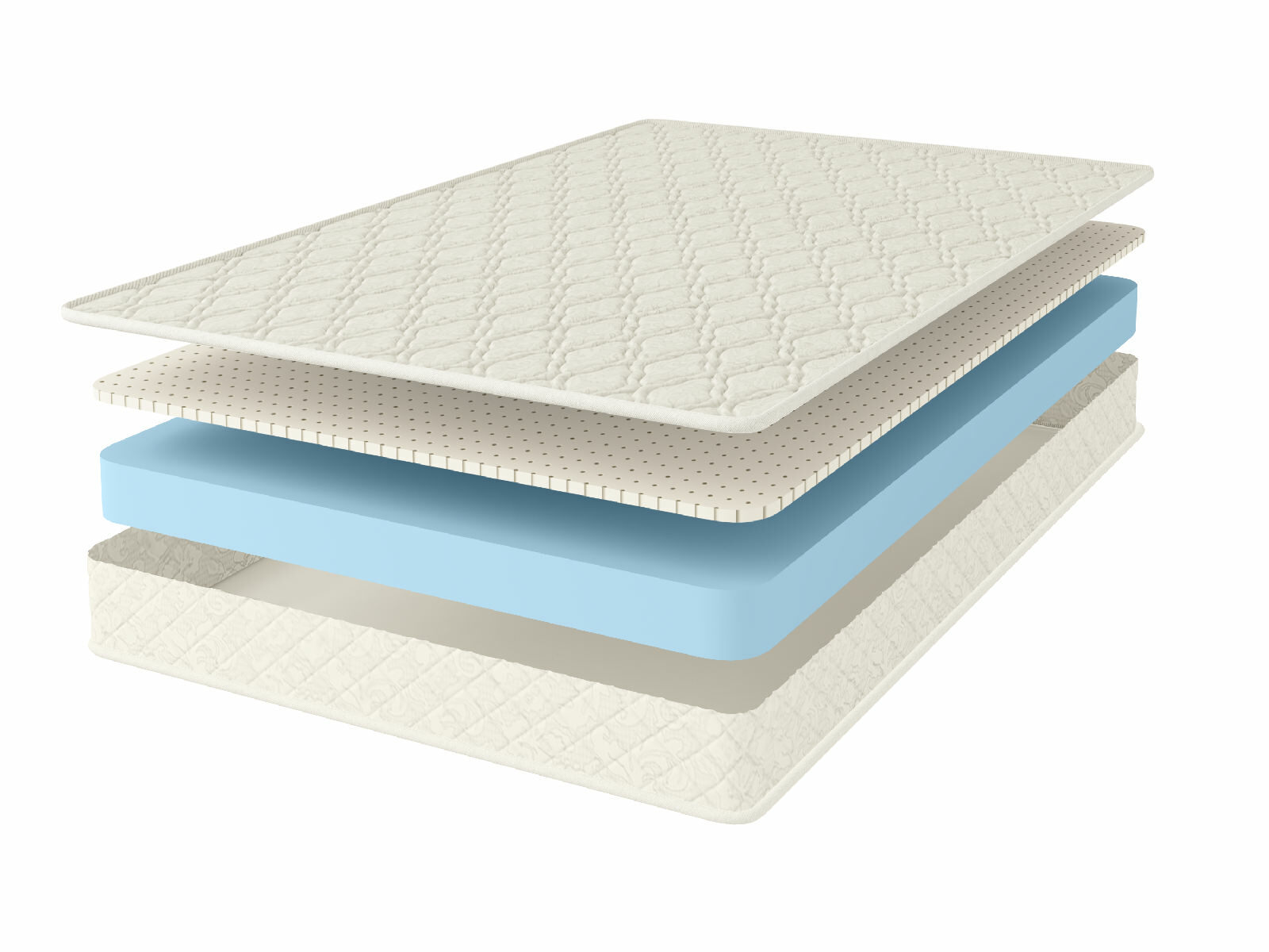 Для модели шьётся жаккардовая обивка, в состав которой обязательно входит натуральный хлопок. Этот компонент позволяет проникать воздуху внутрь матраса и вентилировать поверхности. Таким образом спальное место будет поддерживать комфортную для сна температура, избегая эффекта парника.