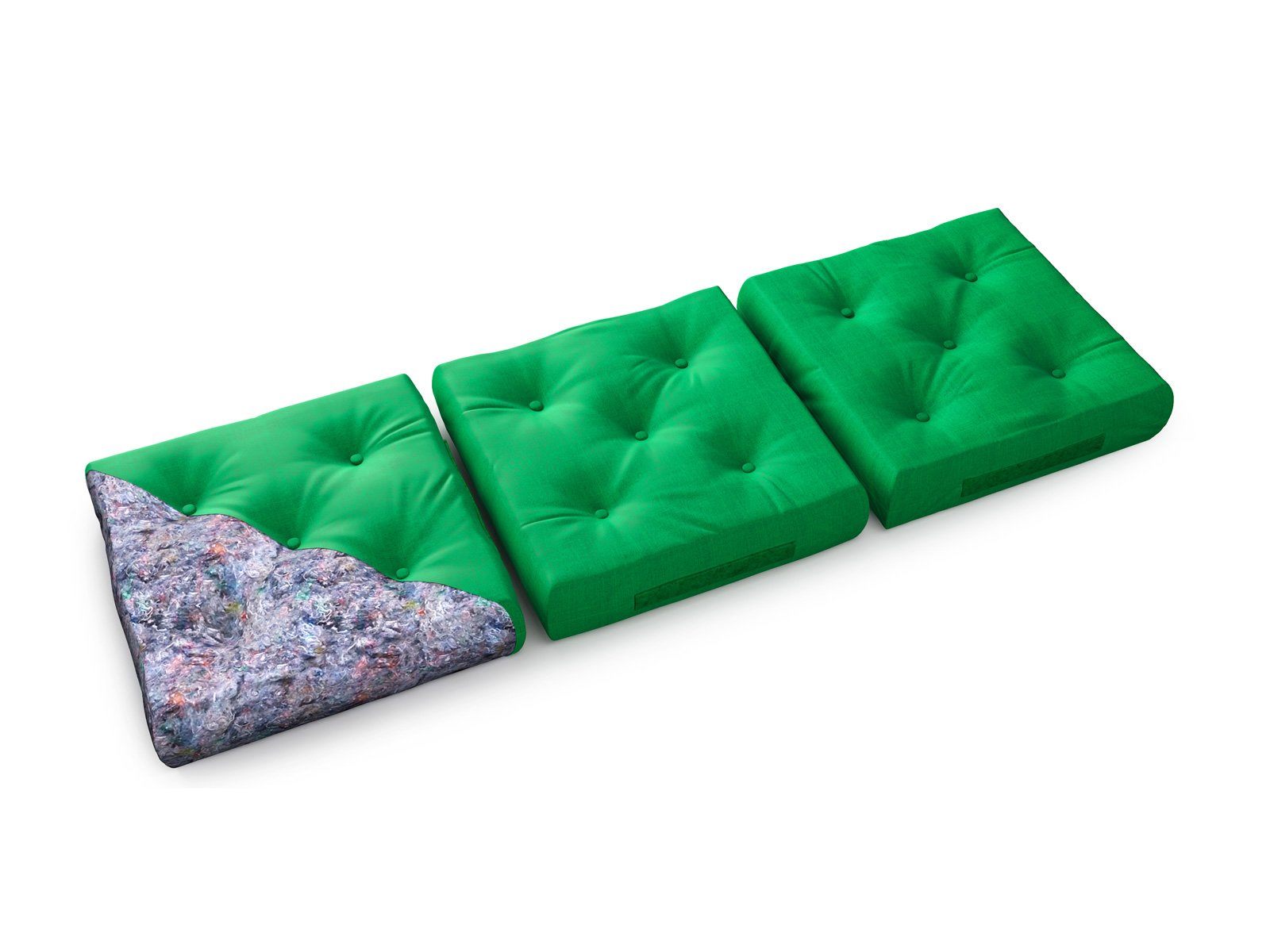 Несъемный чехол футона выполнен из плотной зеленой ткани. Она обладает высокой плотностью, износостойкостью, ее легко очищать от загрязнений и пятен.