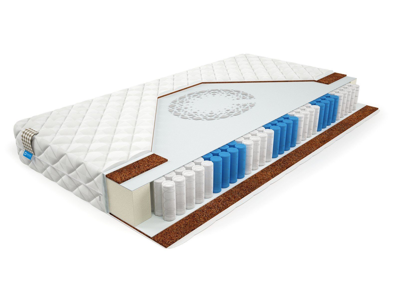Матрас BioCrystal Victor L - простой недорогой матрас средней жесткости. Матрас c ортопедическим эффектом на основе семи-зонного пружинного долговечного блока независимых пружин SIlverSpringPocket 7 zone. Данный блок насчитывает 580 металлических пружин на одно спальное место, это оптимальное количество пружин для бюджетного матраса. 7 зональный пружинный блок SSP 580 значительно прочнее обычного блока независимых пружин, и имеет большее количество витков, что, в свою очередь, лучше сказывается на упругости матраса и качестве сна. Матрас насчитывает семь зон жесткости и правильно повторяет изгибы позвоночника во время сна или отдыха. Одна сторона матраса - средней жесткости, которою ему придает 1 сантиметр латексированного кокосового волокна.