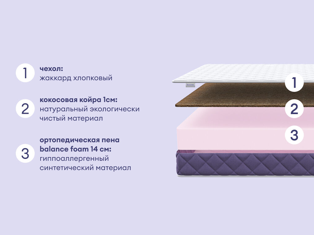 Матрас Базилик Фреш 16 Кокос сочетает в себе удобство и практичность, вдохновлённые французским стилем. С двумя уровнями жёсткости и гипоаллергенными материалами он идеально подойдёт для комфортного и здорового сна.