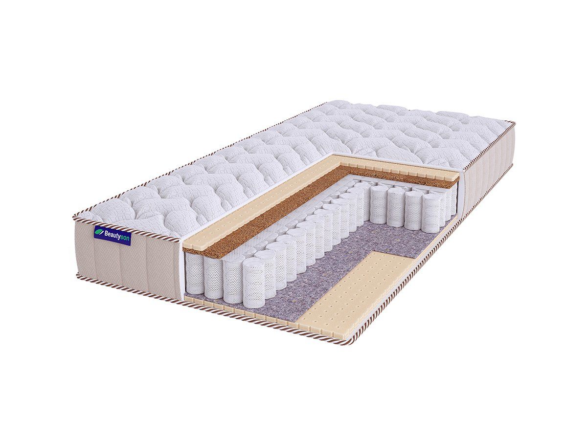 Матрас BeautyRoll Roll Spring Mix Latex 1 S600 LUX изготовлен по уникальной бесклеевой технологии производства, что делает его гипоаллергенным и безопасным для здоровья. Модель получила среднюю и низкую жёсткости сторон.