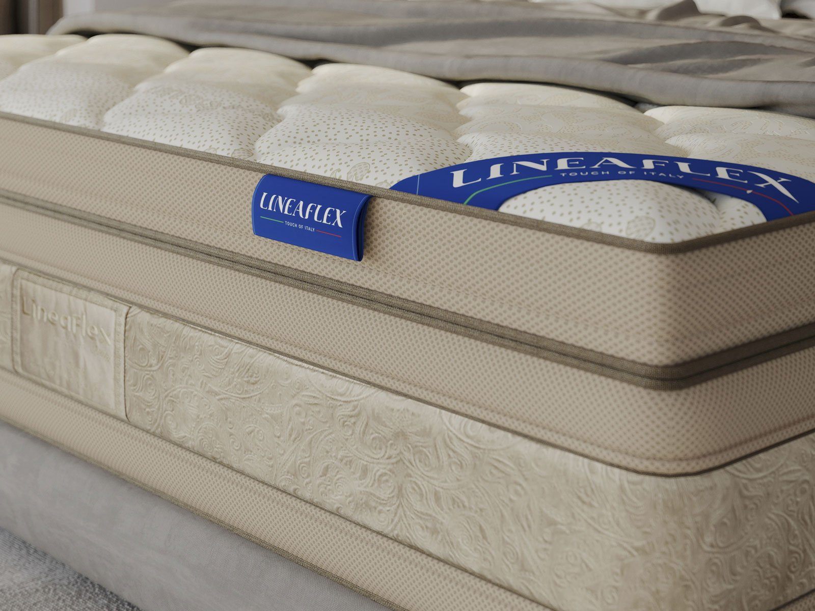 Для обивки матраса реализован роскошный чехол из натуральной вискозы. Ткань получила высокую стёжку по холлофайберу, поэтому обивка обладает супер пышностью. Чтобы свежие потоки воздуха лучше и чаще обновлялись внутри матраса, по бурлету изделия был вшит специальный вентилируемый материал 3D SPACE.