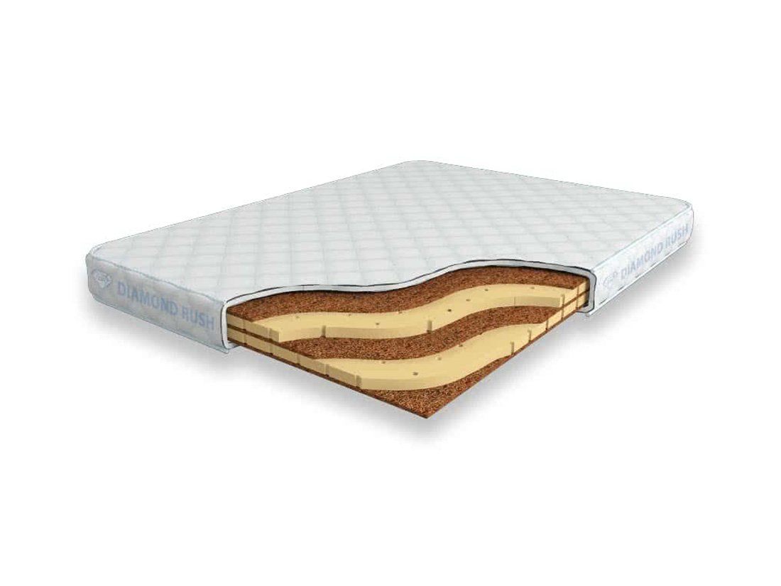 Матрас Diamond Rush Mono Mix Cocos 9 DR является беспружинным, т.е. не имеет в своей основе пружинного блока. В его состав входят одно или несколько чередований слоев латексированной кокосовой койры (1см) и натурального латекса с перфорацией (3см). Такая модель матраса относится к среднежестким и обладает ортопедическим эффектом.