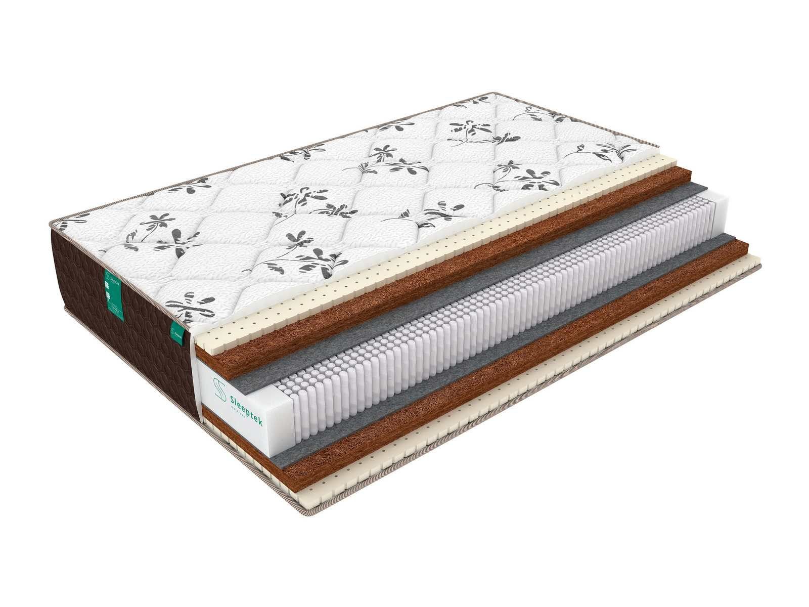 Блок пружин отделен от слоев наполнителей термовойлоком, который не позволяет пружинам повреждать наполнители и продлевает срок службы матраса.