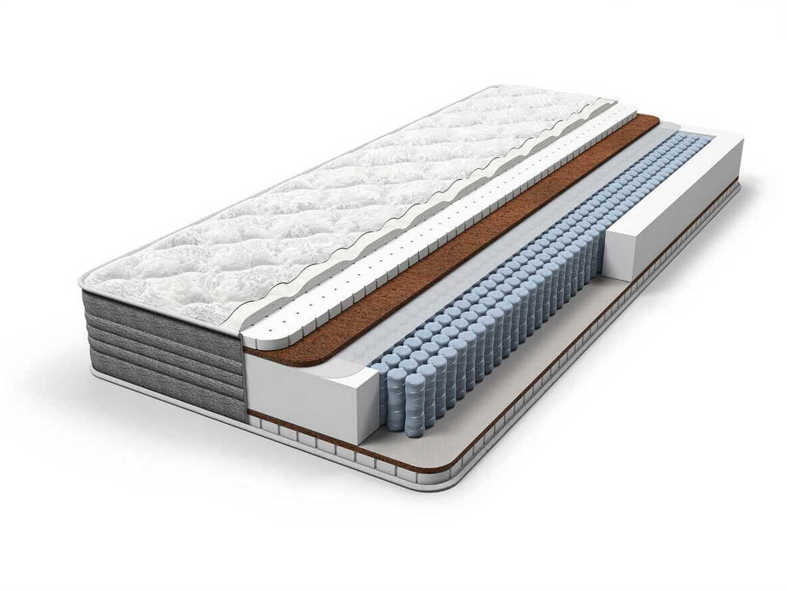 Матрас с независимым пружинным блоком MultiPocket, плотностью 1 000 пружин на спальное место. Благодаря высокой плотности пружин матрас обеспечивает качественную поддержку позвоночника, выдерживает большие нагрузки и равномерно распределяет вес по всей горизонтальной поверхности матраса. Кокосовая койра в комбинации с натуральным латексом обеспечивают среднюю жесткость с обоих сторон матраса.