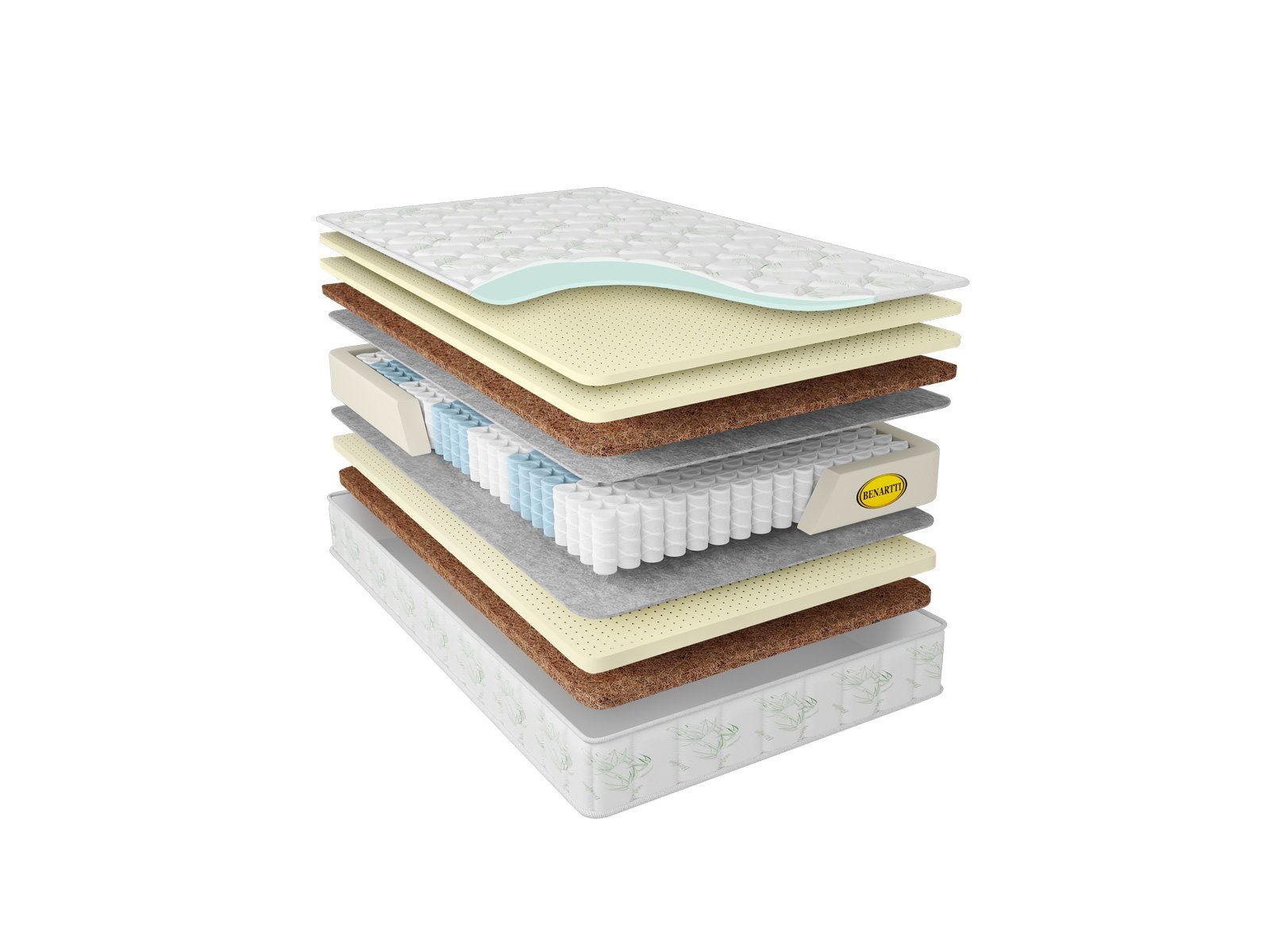 Общая высота в 29 см складывается не только благодаря пружинному блоку. Здесь также задействованы слои натуральной кококосовой койры и природного латекса, проложенные в различном порядке сразу с двух сторон. Так производитель реализовал различную жёсткость сторон – среднюю и выше среднего.