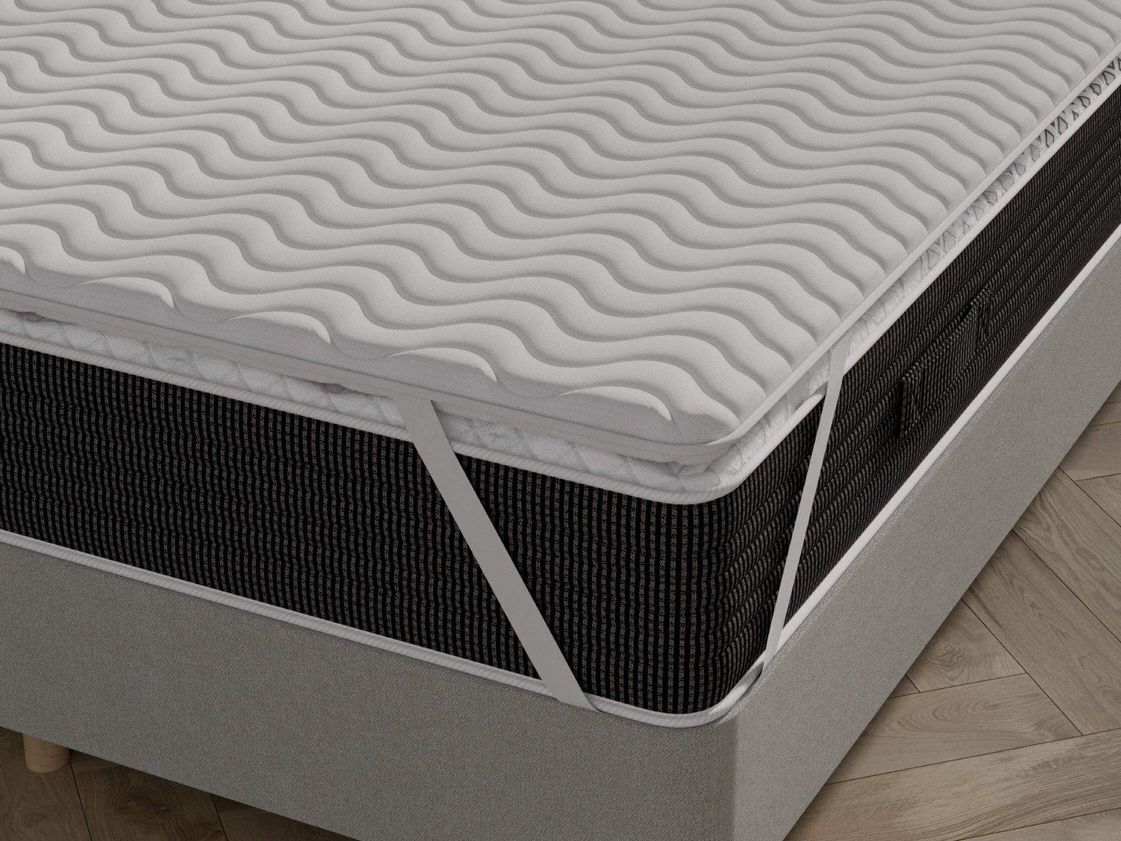 Топпер состоит из кокосовой койры. Предназначен для придания жёсткости слишком мягким матрасам и диванам, а также для устранения небольших прогибов и неровностей. Крепление осуществляется с помощью резинок по четырём углам. Чехол выполнен из натурального хлопка.