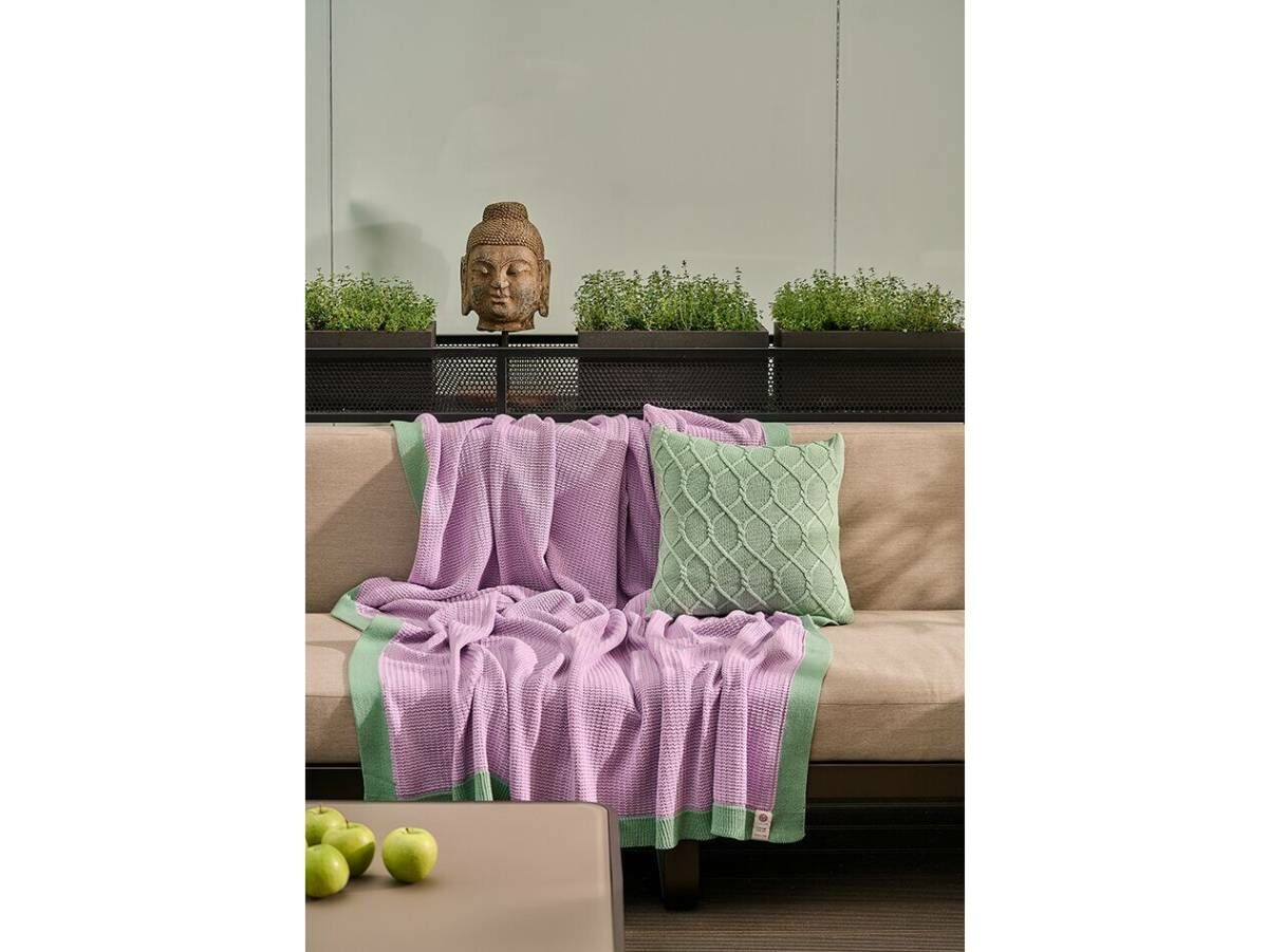 Ухаживайте за пледом как за своим любимым хлопковым вязаным свитером : стирка в ручном режиме жидким моющим средством для нежных вещей, сушить в разложенном виде на горизонтальной поверхности.