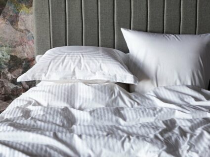 Постельное белье Palette Grass — это, прежде всего, качественные натуральные жаккардовые ткани, при производстве которых используется дополнительное кручение пряжи. Благодаря этому приему постельное белье дольше сохраняет превосходный внешний вид и дарит ощущение прохлады летом и уюта зимой. Все комплекты шьются из тканей “компаньонов” одного цвета и имеют пододеяльник(и), простынь, и наволочки, которые комплектуются в фирменную коробку с логотипом. Стирка при температуре до 40С°