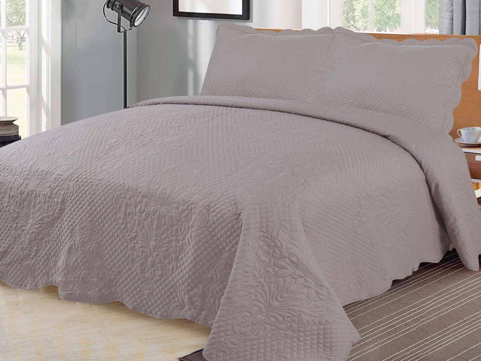 В комплект входят покрывало и одна либо две наволочки (50х70 см) из аналогичного материала в зависимости от размера. Каждый набор заботливо упакован в фирменную подарочную сумку.Покрывало с рельефной стежкой.