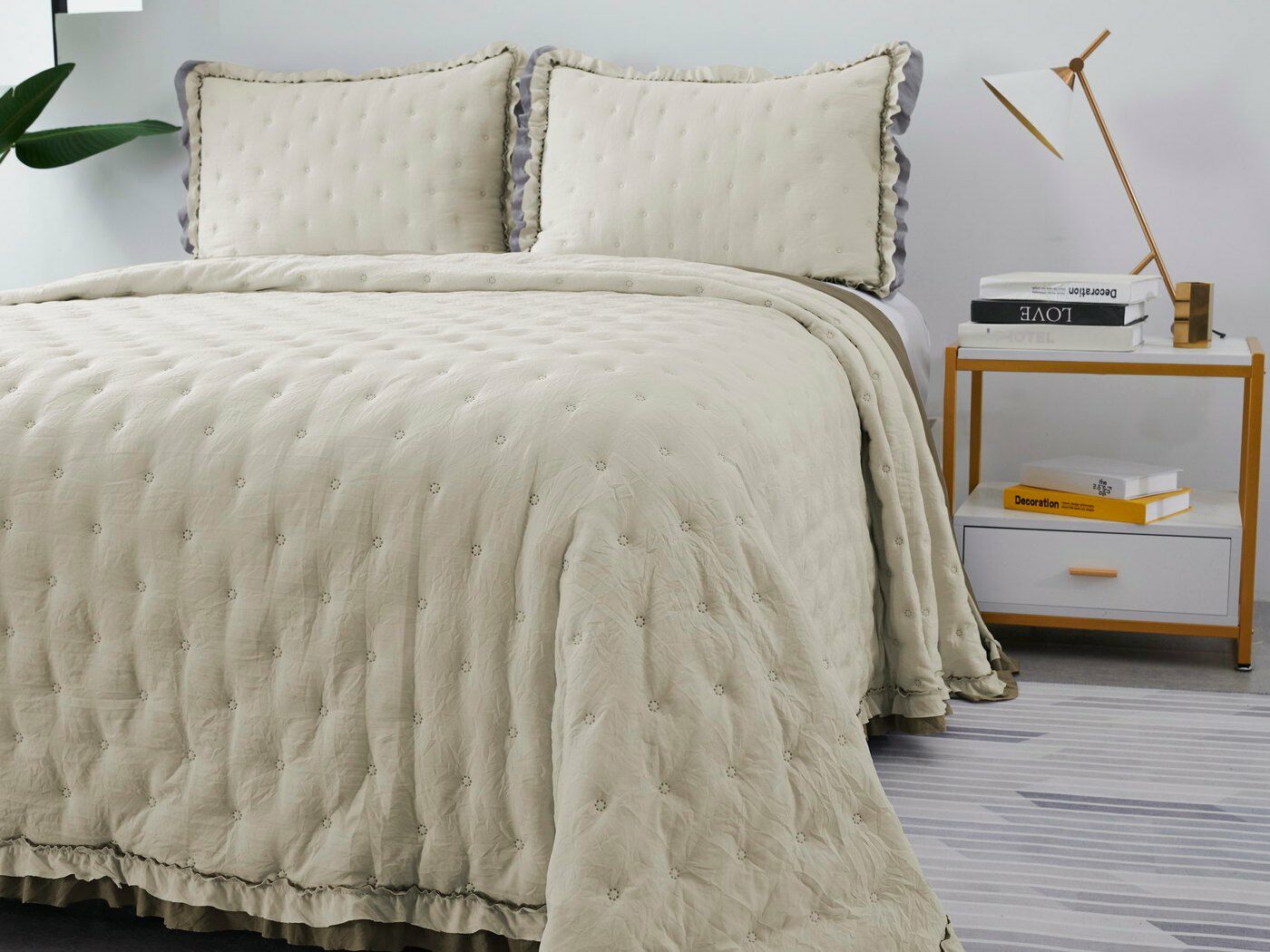 Покрывала выполнены в десяти оттенках, они подойдут для различных интерьеров, объединяет коллекцию потрясающее качество и приятный внешний вид. Изделия декорированы рюшами по краю, что подчеркивает из красоту и изысканность.