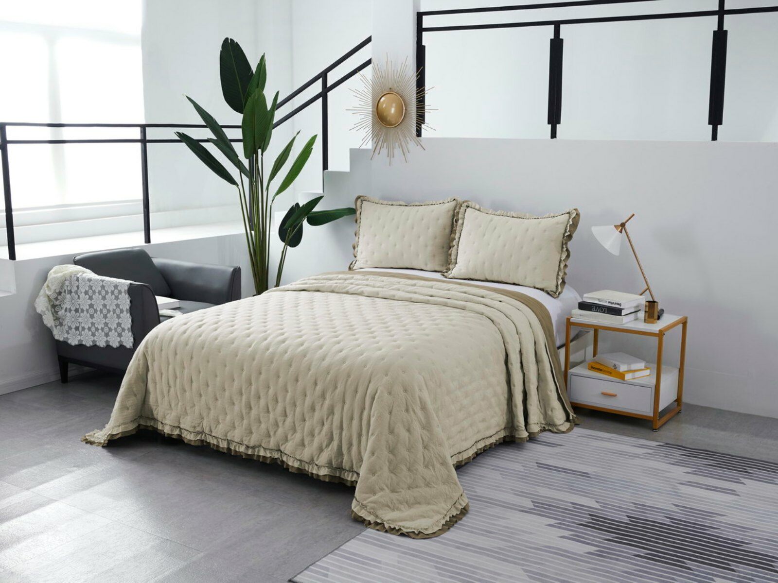 Двусторонние стеганные покрывала Элизабет выполнены из вискозы и хлопка, они легкие и прочные. В комплекте с покрывалом идут две наволочки, вы можете использовать покрывало по назначению, либо в качестве постельного белья. В любом случае, вы будете в восторге от этого комплекта!