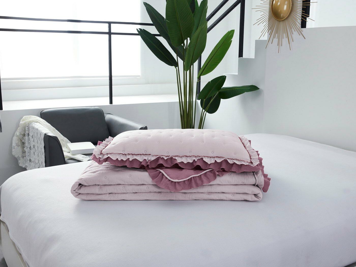 Покрывала выполнены в десяти оттенках, они подойдут для различных интерьеров, объединяет коллекцию потрясающее качество и приятный внешний вид. Изделия декорированы рюшами по краю, что подчеркивает из красоту и изысканность.