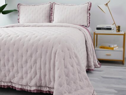 Двусторонние стеганные покрывала Элизабет выполнены из вискозы и хлопка, они легкие и прочные. В комплекте с покрывалом идут две наволочки, вы можете использовать покрывало по назначению, либо в качестве постельного белья. В любом случае, вы будете в восторге от этого комплекта!
