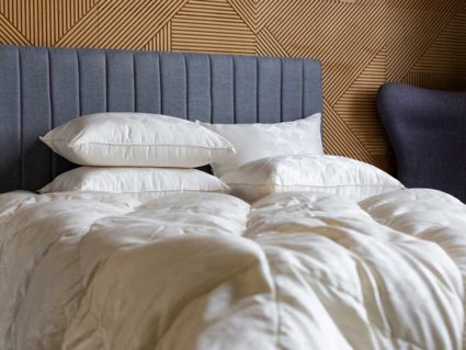 Наполнитель: 100% белый гусиный пух высшего качества с повышенным коэффициентом упругости (Fill Power), не менее 850 ед. Сертифицирован RDS.