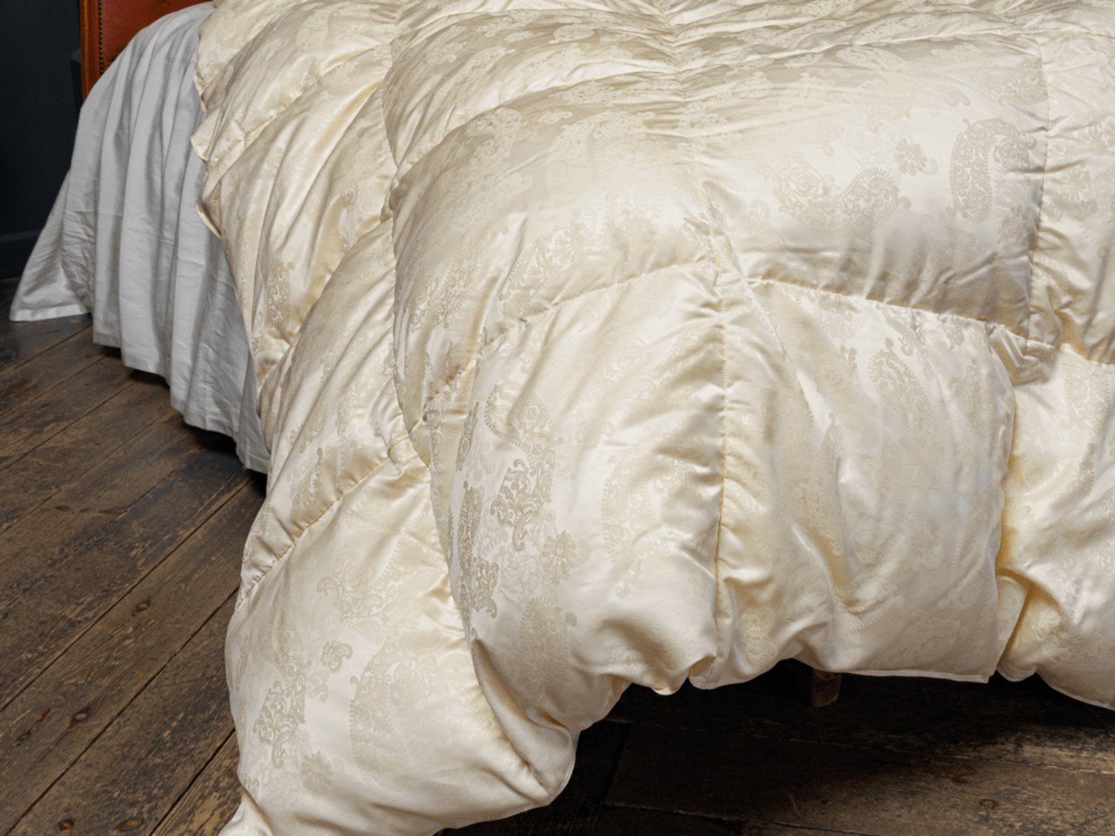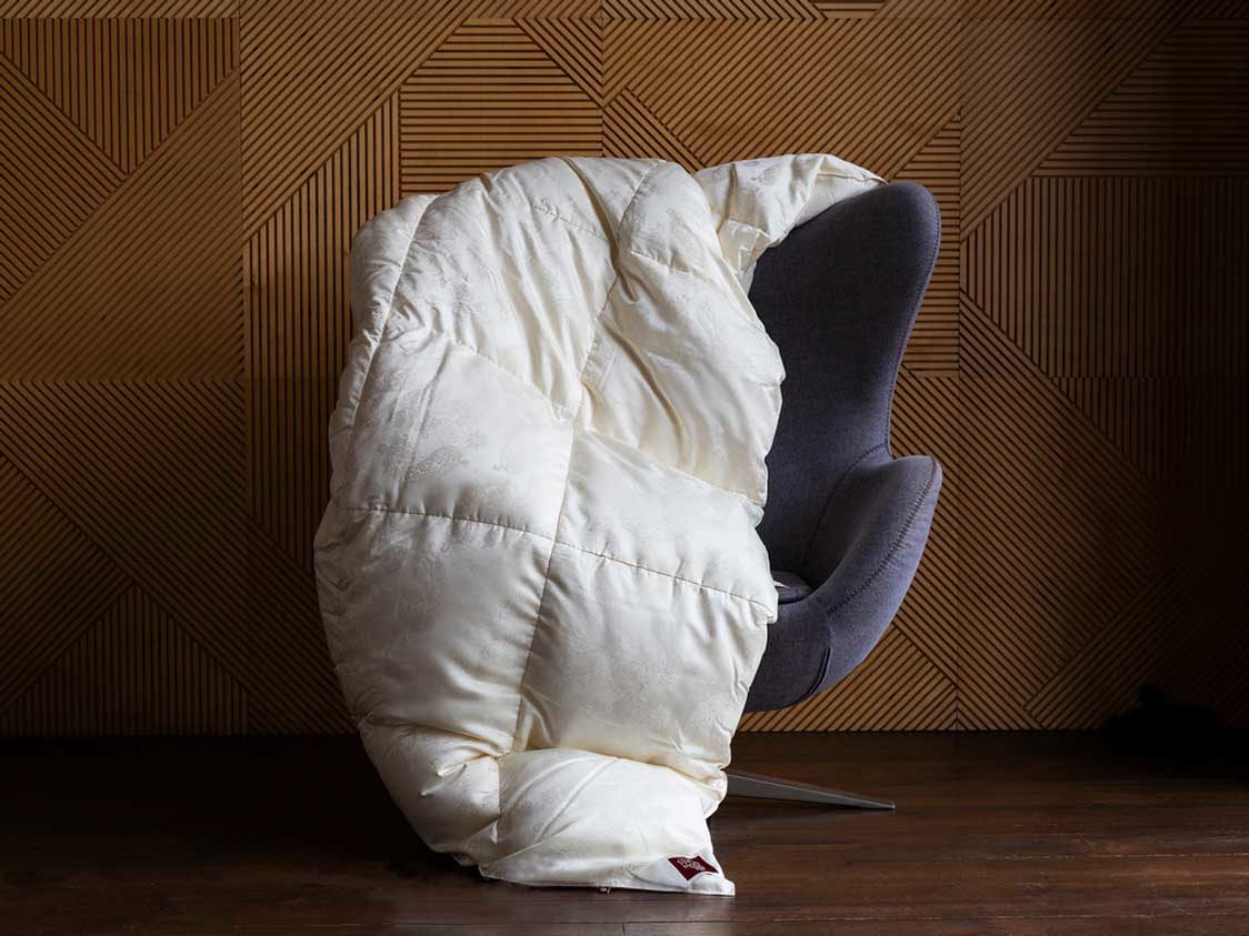 Сочетание сливочного пуходержащего жаккардового сатина PAISLEY из натурального 100% шелка и первоклассного пухового наполнителя категории “Экстра” повышенной упругости (Fill Power не менее 850 ед.) – это совершенный эксклюзив в мире постельных принадлежностей. Высокая плотность ткани и двойная отстрочка не позволят пуху мигрировать из изделия и не пропустят частички пыли внутрь. Эксклюзивные ткани создаются на единственном производстве в Европе – старейшей немецкой ткацкой фабрике – в лимитированном количестве. Для того, чтобы ткать шелковый пуходержащий жаккард с узором, необходимо обладать высочайшим уровнем мастерства. Кассетные одеяла ручной работы предназначены для использования в холодное время года. Каждая кассета размером 30х30 см наполнена отборным белым пухом вручную. Как и всякий эксклюзив, изделия этой коллекции требуют особого ухода при обслуживании: мы не рекомендуем их стирать, допускается только сухая чистка изделий.