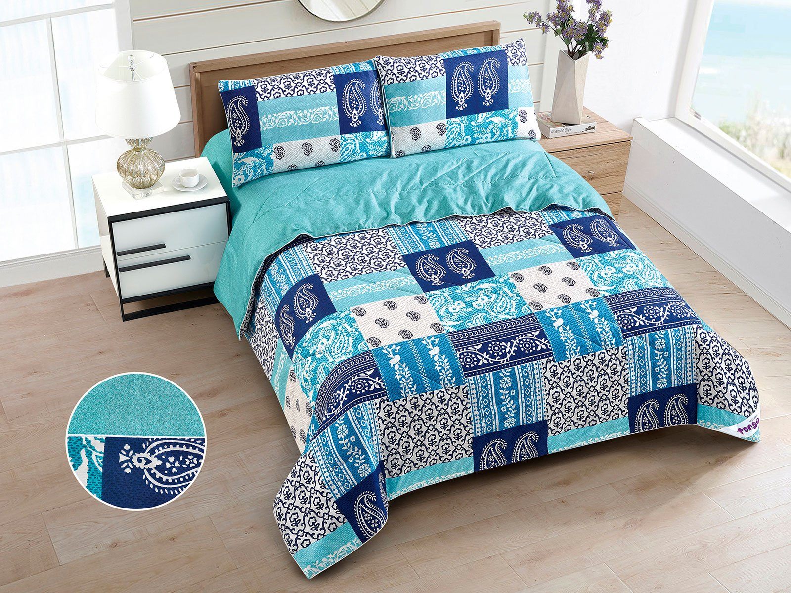 В данный комплект вместо пододеяльника входит облегченное одеяло. Комплект подойдет тем, кто устал от мучительного натягивания пододеяльников на одеяло.